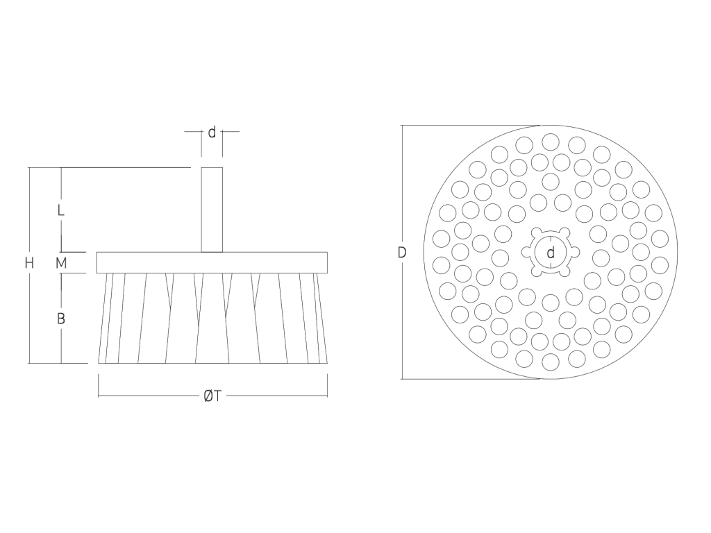 Estos cepillos se utilizan para la limpieza de superficies planas, curvas y profundas en donde se requiere limpiar el fondo solamente. Las principales aplicaciones para este tipo de cepillos son en la limpieza de cavidades profundas de moldes metálicos y superficies metálicas que requieran una limpieza o pulido profundo. El trabajo adecuado para este producto es con moto-tool o taladro a alta velocidad para la correcta limpieza de residuos o suciedad. Aplican en trabajos automáticos, semi-automáticos y robóticos.