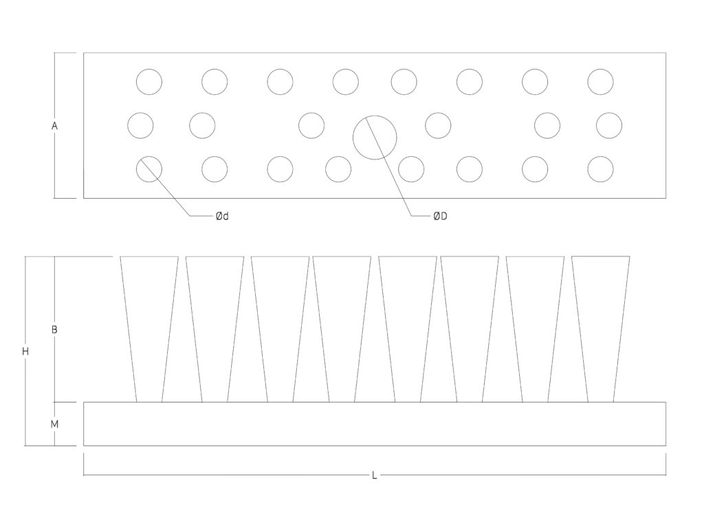 Somos fabricantes, por lo tanto podemos realizar los cepillos a la medida que se ajuste a la necesidad del cliente. En caso de ser necesario se puede cambiar el material de la base.